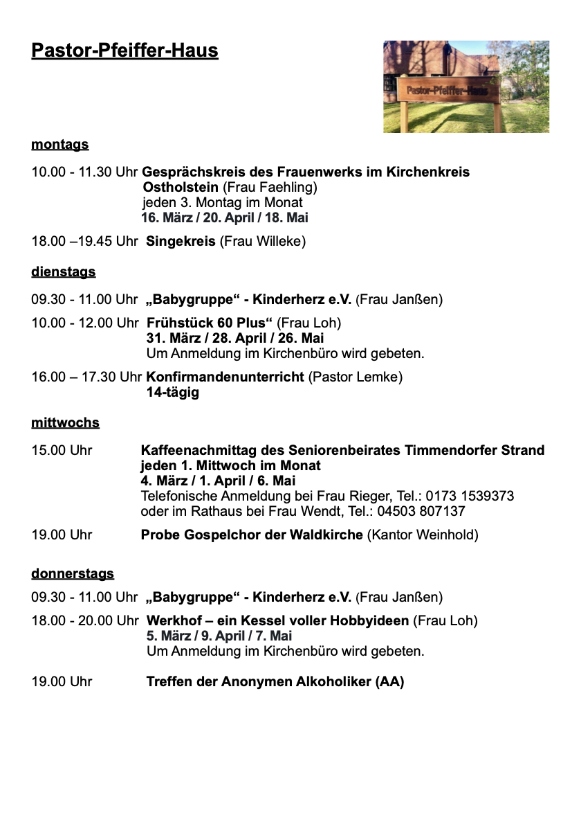 Regelmäßige Angebote im Pastor-Pfeiffer-Haus
